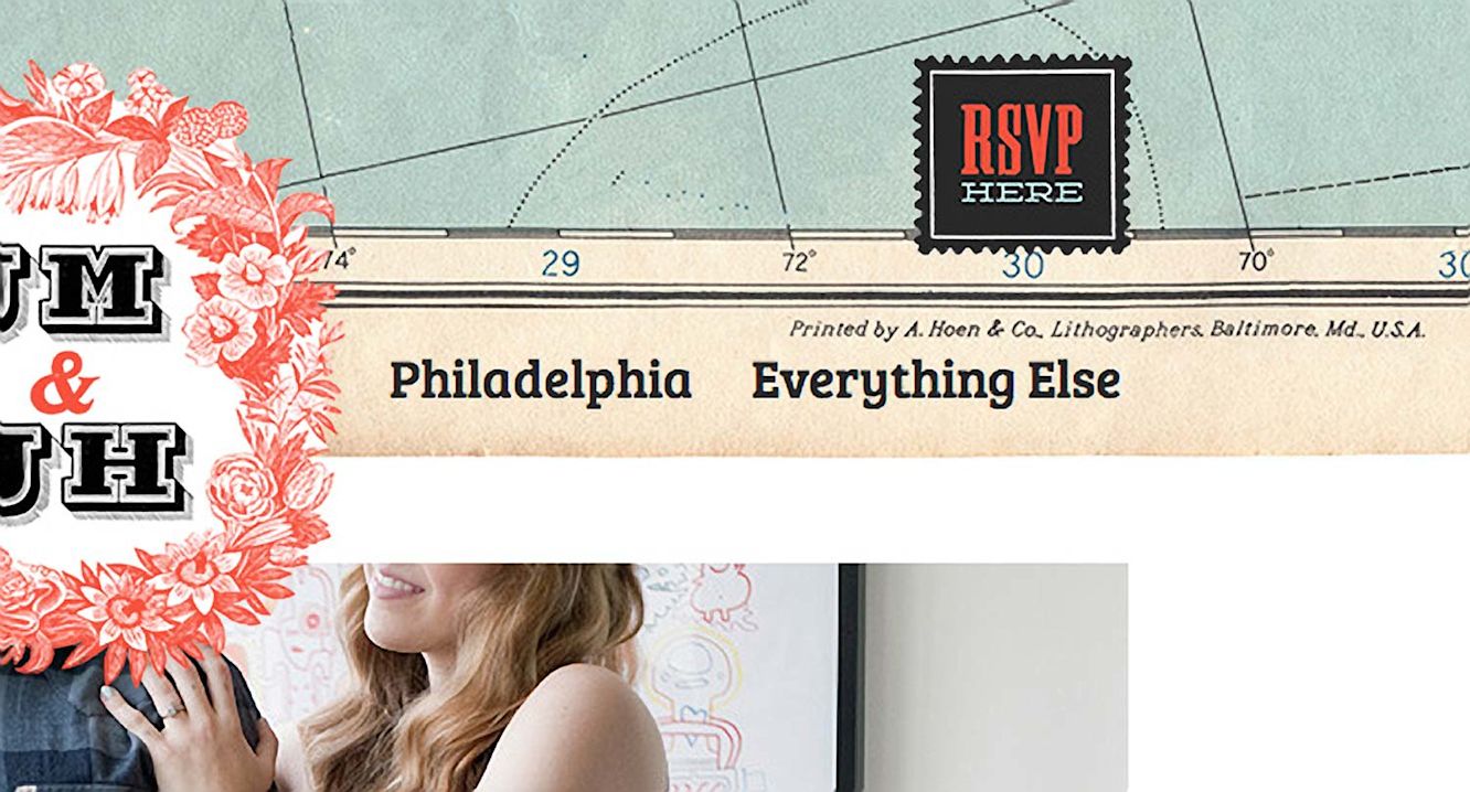 To get the word out, we used Mailchimp. Since we had a Google Docs spreadsheet of our guests, importing them into Mailchimp required only a click. Again, we used a scan of a vintage postcard as the email graphic with hand-drawn type by Jen.