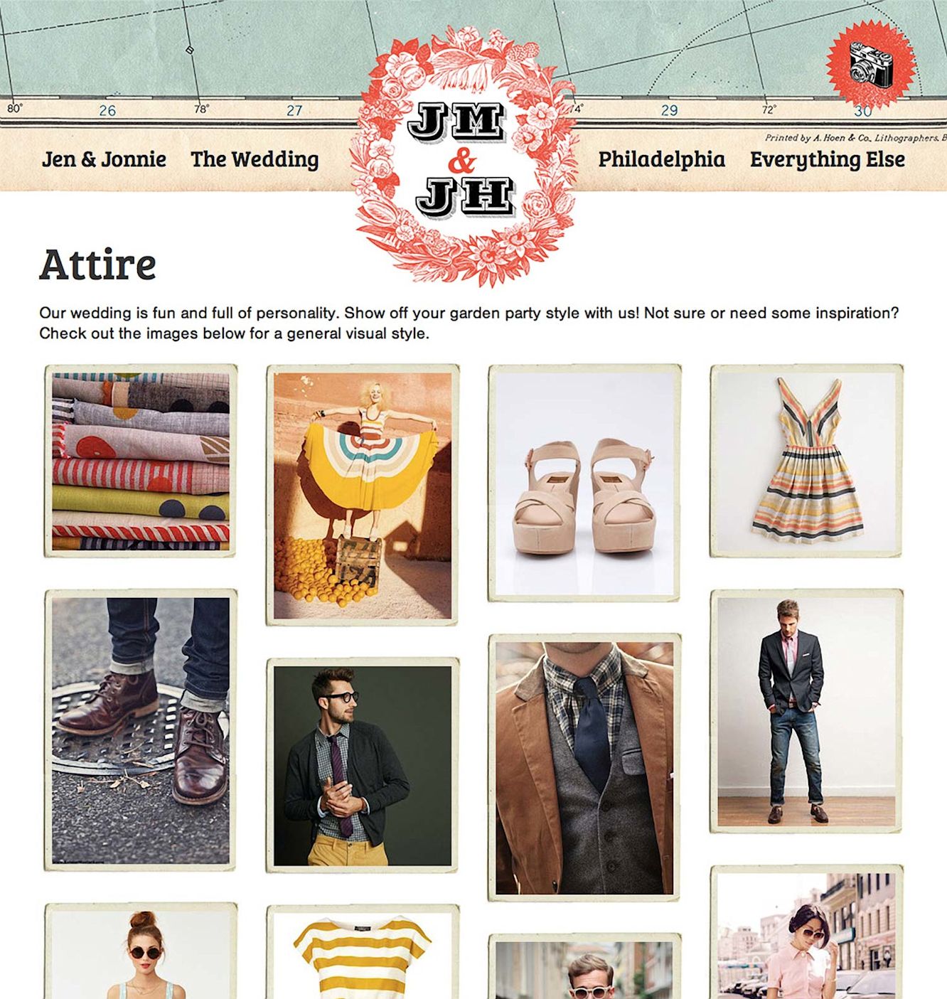 The website was built on Jekyll with HAML and SASS compiling to HTML and CSS, respectively. It provided guests with everything they needed to know about the wedding, including the pertinent information, like time and location, but also our backstory, hotel accommodations, and Philadelphia attractions. Jen even created a Pinterest board for suggested attire that I coded to fit within the site.